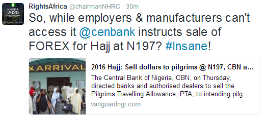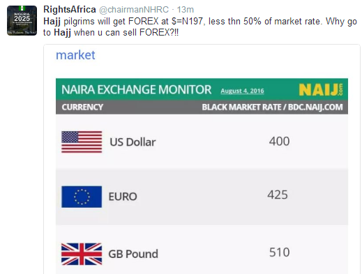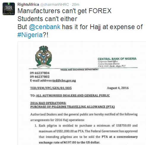 Chairman of the National Human Rights Commission NHRC, Prof Ben Angwe took to his twitter handle to react to the news of CBN subsidizing the dollar for Muslim pilgrim.
