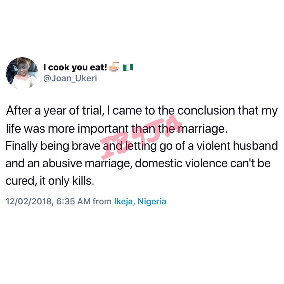 Domestic Violence Has No Cure, Nigerian Lady Declares, As She Walks Out Of Her Marriage, After A Year Of Trial