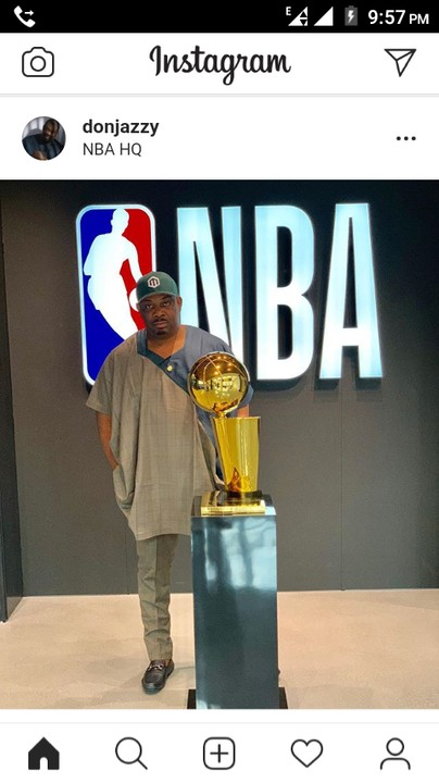 Don jazzy stoms Nba headquarter took pictures with trophy pic