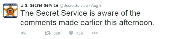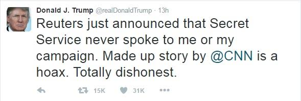 Donald Trump has gone on Twitter to deny having a meeting with the United States Secret Service after CNN reported that a Secret service agent confirmed to them that they had met Donald Trump’s campaign team and questioned them after his 2nd amendment comment on Presidential candidate Hillary Clinton.