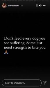 Bovi in his Instastory post stated that not every dog suffering need to be fed as some just need strength to bite.
