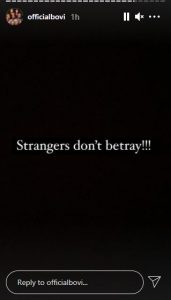 Giving more backing to his earlier comment, Bovi added that “Strangers don’t betray”.