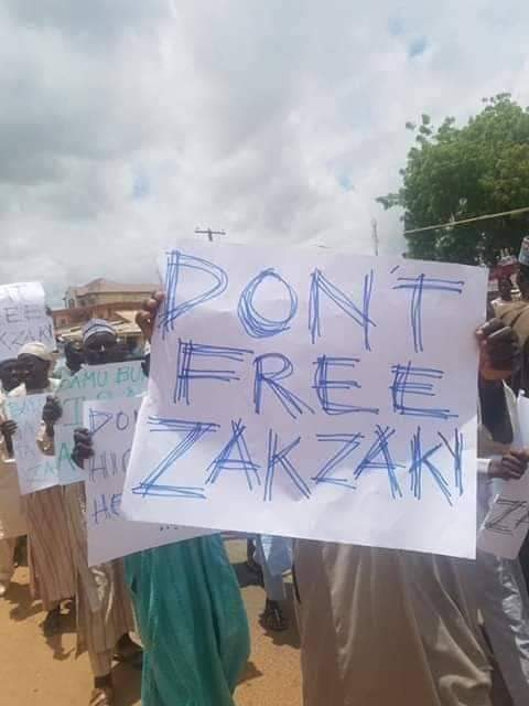 The group carried out protest displaying placards with ‘Don’t free Zakzaky’ inscriptions.