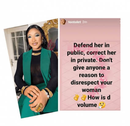 Taking to Instagram to pass her message, Tonto Dikeh stated clearly how and where a man should do and what he should not do to his woman.