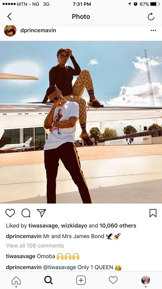 The News Making round that Starboy Wizkid and Tiwa Savage are having something more than just collabos, might have an iota of truth, Cos Tiwa’s Record Mate Dprince just shared photo of them posing together and he captioned the photo as ‘Mr and Mrs’, and she responded with the Twale emoji, This goes along to explain things underground, Ofcourse Dprince and Tiwa Works together, so he knows best whats going on, And me, am just resting my fingers on her keyboard, while sipping the tea, as more drama unfolds..