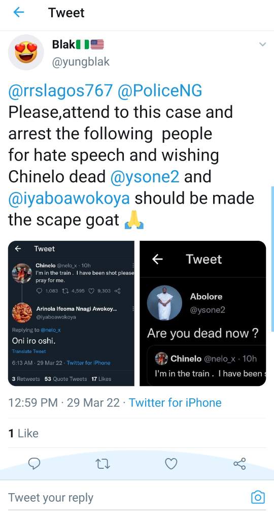 Angry Nigerians have taken to Twitter to blast Abolore over his insensitive reply to Chinelo’s tweet, asking Nigerians to pray for her.