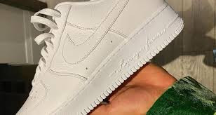 The all-white leather kicks appear to look like a standard pair of AF1 Lows, but upon close examination one will notice small hearts towards the front of the shoe in place of the traditional textured stars.