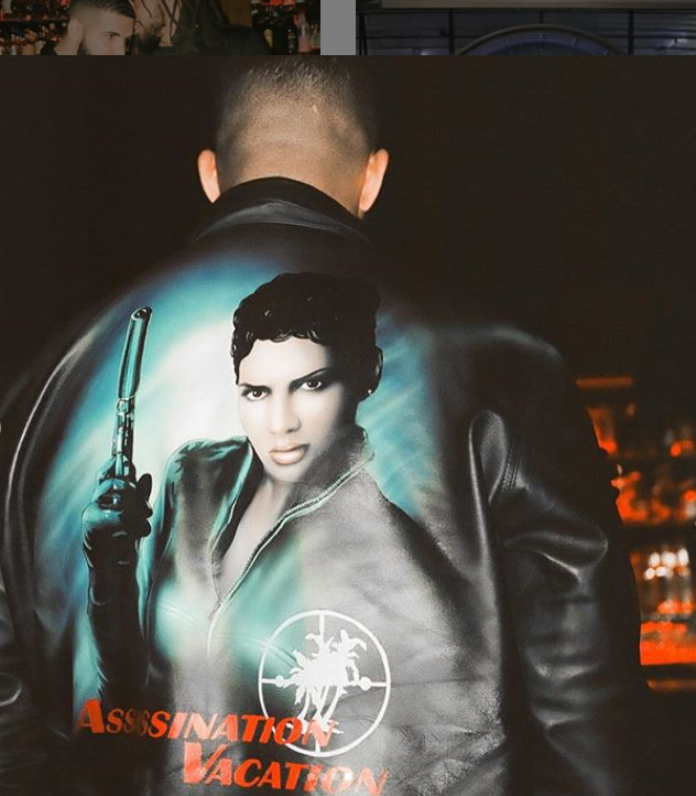 Drake was held a back-to-back sold out show in London, was spotted wearing a custom leather jacket by Nigerian designer Mowalola.Drake who was hanging out with J.Cole, was wearing a custom leather jacket by Nigerian designer Mowalola which had a Halle Berry and the words ‘Assassination Vacation” emblazoned on the back. Fashion lovers were quick to notice the name printed on his arm for all to see.