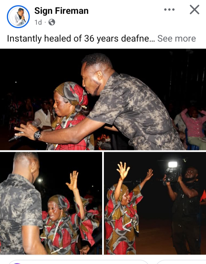 The pastor’s post, which included images of the woman during ministration, described her as someone who had lived with left-ear deafness for decades and had just experienced a miraculous restoration of hearing.
