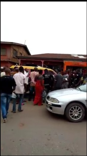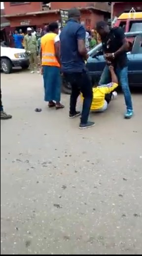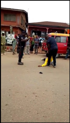 While, this was going on, residents of the area were seen carrying on with their activities before later gathering at the scene to come to his aid.