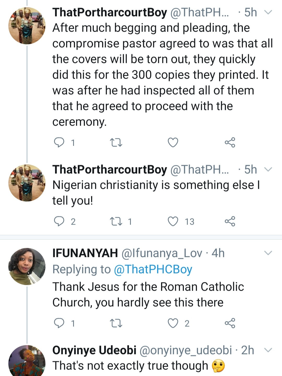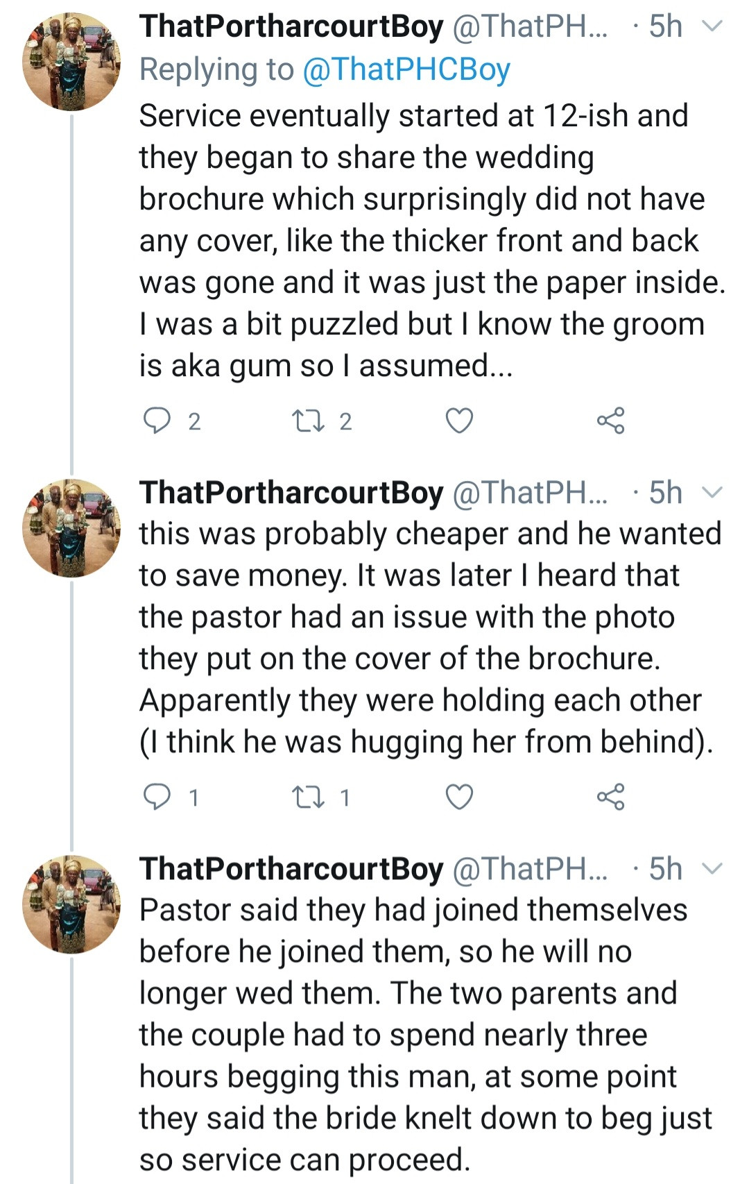 A Nigerian Twitter user has told the rather startling story of a wedding he attended where the ceremony was delayed for 2 hours as the priest refused to wed the couple.