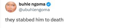 Buhle, who disclosed this in on August 18, 2025 said the man was stabbed to death.