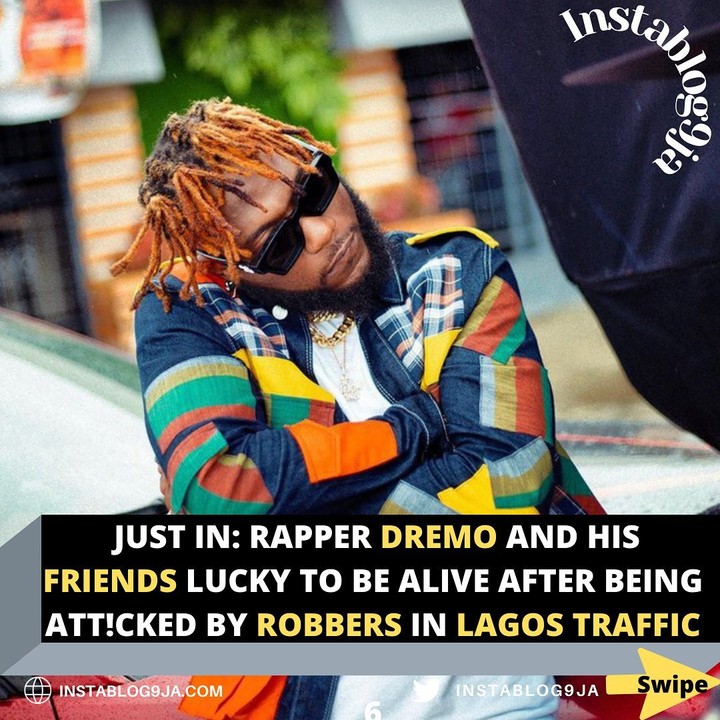 Nigerian rapper, Dremo and his friends survived a robbery attack in Lagos traffic, IgbereTV reports.
