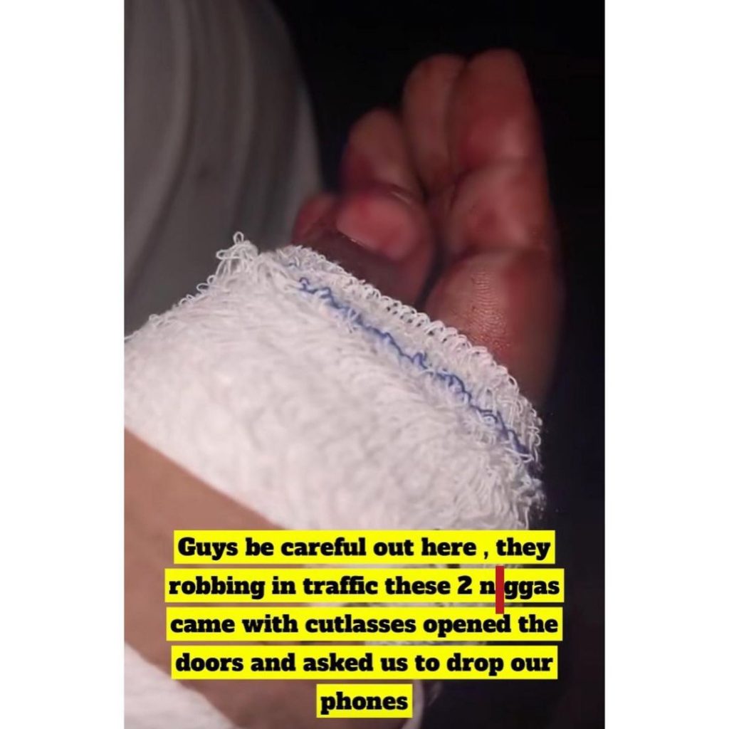 “Guys be careful out here, they robbing in traffic these 2 niggas came with cutlasses opened the doors and asked us to drop our phones”, he wrote.