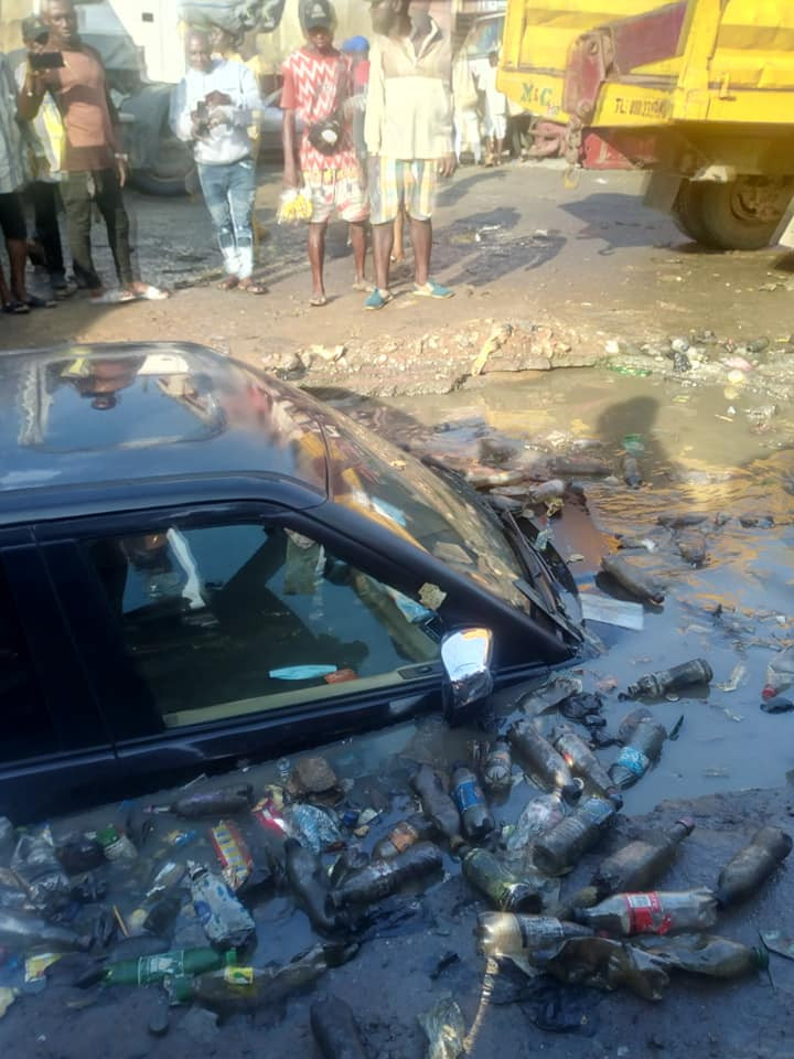 The man survived after his car slipped into a gutter that appeared after a heavy downpour in Owerri, the Imo state capital.