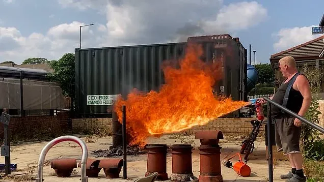 Other items found included banger fireworks sealed inside piping with wires and springs attached, a stun gun hidden behind a fridge-freezer and a homemade flamethrower in a workshop. Officers also recovered two high-powered air guns, a crossbow and £27,000 in cash sewn into a sofa.