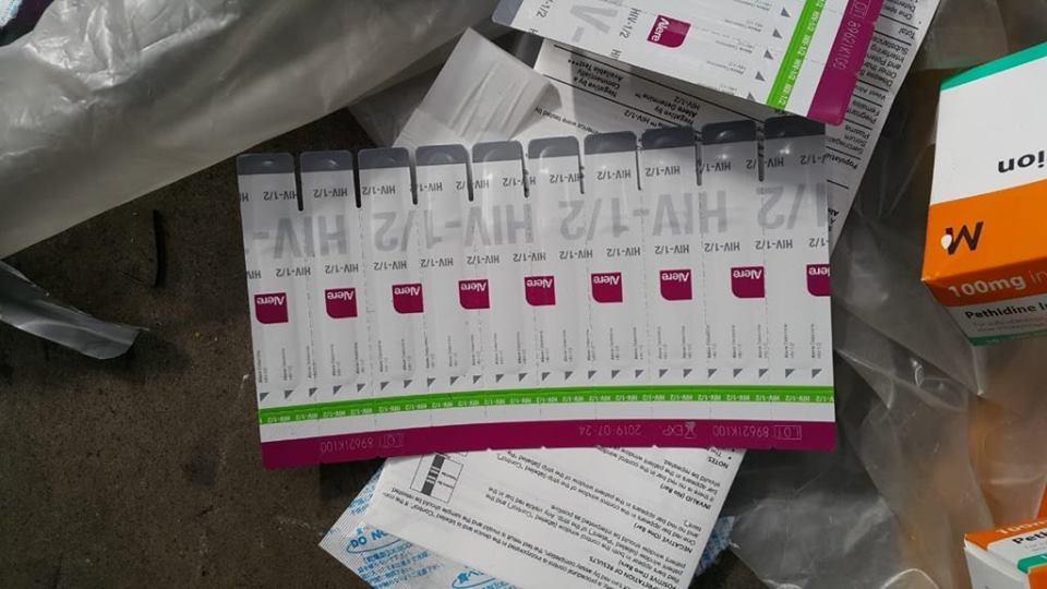 A search was conducted on the consignment leading to the confiscation of Narcotic drugs(Heroin) concealed in HIV-1/2 sachets.
