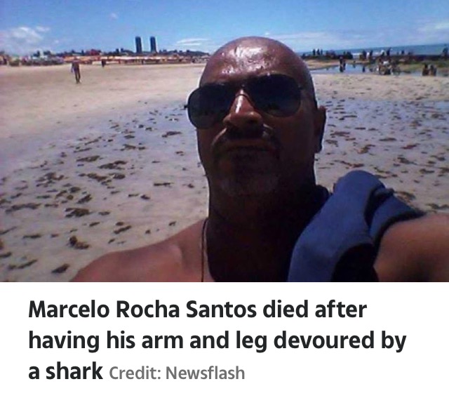 Marcelo Rocha Santos, 51, had reportedly been drinking with friends before he entered the water and was fatally bitten by the vicious animal.