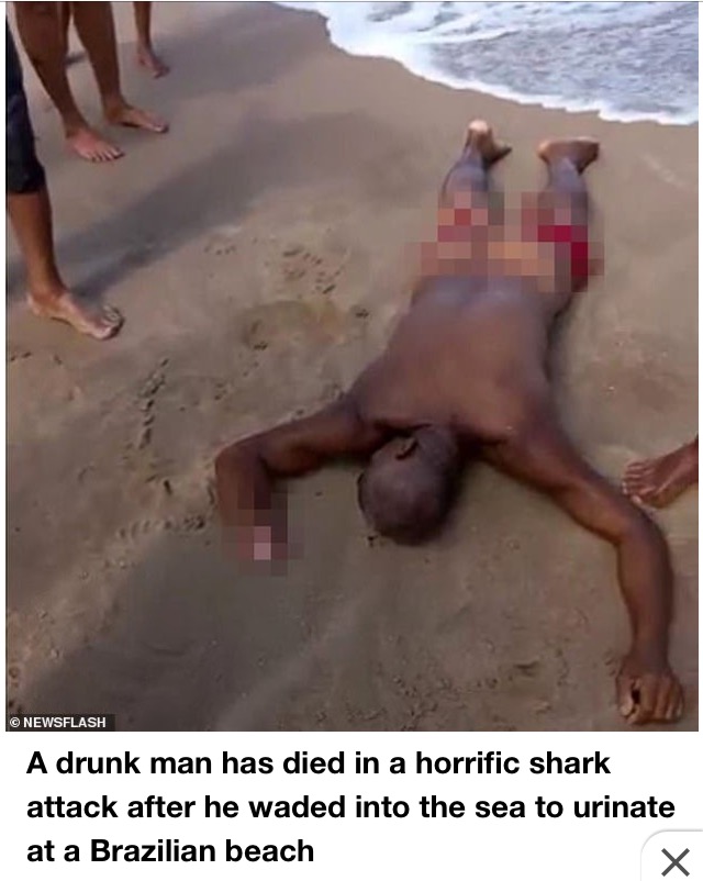 A DRUNK man was mauled to death by a shark after walking into the sea to pee on a Brazilian beach.