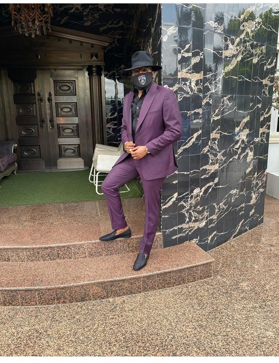Five star boss, E-money, rocks Nigerian police customised facemask as he steps out in style.