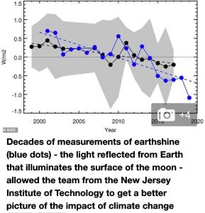 Decades of measurements of earthshine – the light reflected from Earth that illuminates the surface of the moon – allowed the team from the New Jersey Institute of Technology to get a better picture of the impact of climate change.