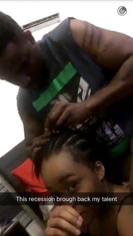 Media personality Ebuka Obi-Uchendu shared a cute video of himself braiding his wife Cynthia’s hair into cornrows, via Snapchat. According to him, it’s one of his talents & the current economic recession brought it back out. Lol. When Ebuka was done, he shared a photo of the finished work and wrote, “No more salon money”. See the photos after the cut..