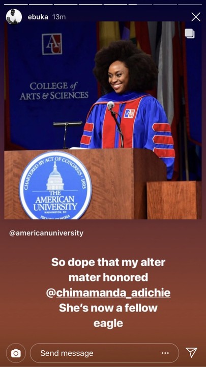 Ebuka who is a proud Alma Mater has now shared a photo of Chimamanda, congratulating her for being a fellow Eagle.
