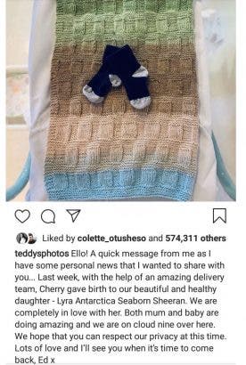 The British singer shared a beautiful pair of socks belonging to his daughter to reveal the joyful news to fans. He also said mother and daughter are doing well as he asked the public to respect their privacy during this time.
