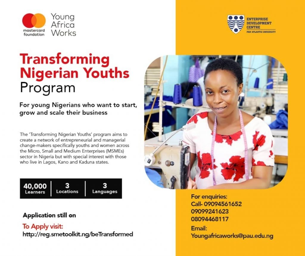 The free training program is open to all and primary focused on people living in Lagos, Kano and Kaduna states. Through this program, 40,000 young people will be supported with the resources and learning required to start, grow, and expand their businesses.