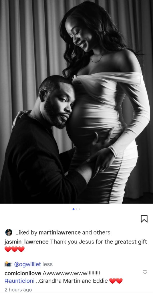 Eddie Murphy’s son Eric and Martin Lawrence’s daughter Jasmin have announced that they are expecting their first child together.