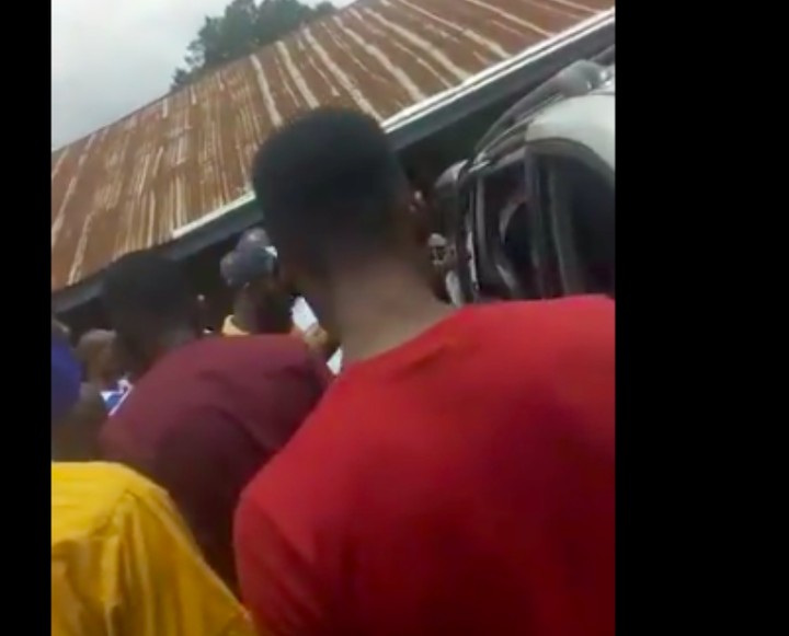 The suspect, seen wearing a white Polka dot shirt in the footage below was accused of vote-buying by the electorate at Esan North East LGA, Arue (Ward 03), Arue Primary School 1 (PU 004).