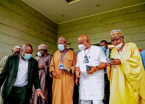 IgbereTV captured pictures of His Excellency Gov. Umar Ganduje with his Imo State counterpart, Gov. Hope Uzodinma at the residence of the former National Chairman of the APC Comrade Adams Oshiomhole in Benin City.