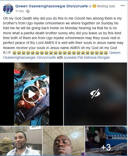 Some of the Edo indigenes who were killed in a fatal bus accident yesterday on return from Spain – have been identified. It was reported that about eight persons, five males and three females, lost their lives in an accident on Tuesday morning when a Hummer bus conveying them rammed into a Mack truck. Two men Paul and Sunny were among the victims who died in the accident.