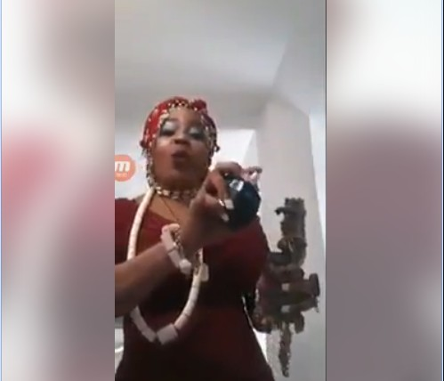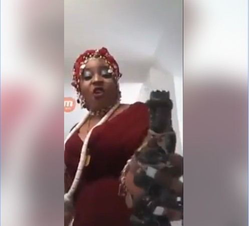 In a video which she posted online and even urged her followers to share, Laura can be seen making some incantations with a traditional artifact which had a small snake, keys and other fetish items on it as she said the snake will swallow Monica and all her things.