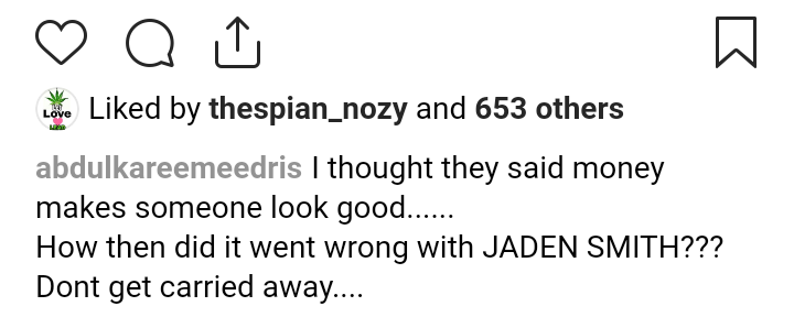 Nigerian musician Eedris Abdulkareem reacts after American actor Son, Jaden Smith looks scanty despite his wealth.