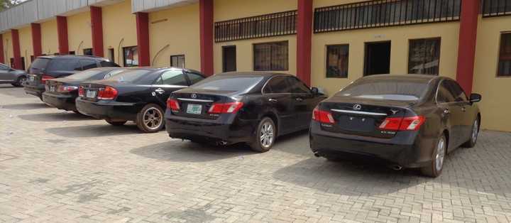 In the course of the arrest, various exotic cars including brand new Lexus ES 350 with no registration number, Black Toyota 2.4 with registration number ENU-598-SU, Black Mercedes Benz ML 350 jeep with registration number ABJ-275-DB, Black Lexus ES 330 with registration number UWN-901-MP, Black Lexus ES 350 with registration number JJJ-900-GK were recovered from the suspects.