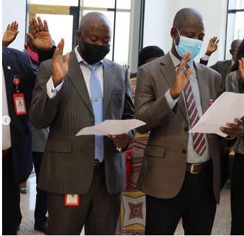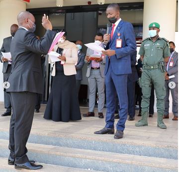 Abdulrasheed Bawa, the Chairman of the Economic and Financial Crimes Commission, on Tuesday, May 18 alongside other top officials of the anti-graft agency in taking the oath of secrecy.