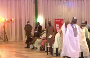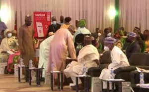 He was later assisted to his seat by the Minister of Communications and Digital Economy, Dr Isa Ali Pantami, and other senior officials at the event.
