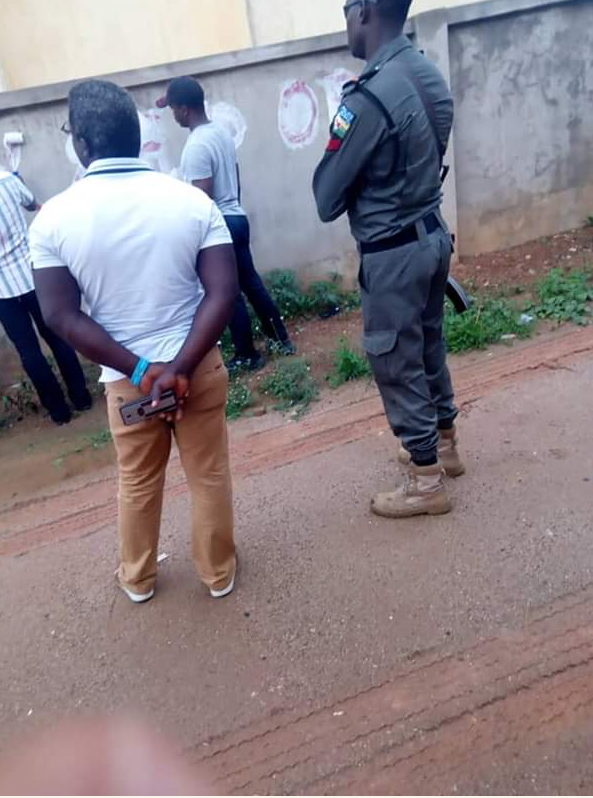 ‘EFCC officials in Ado Ekiti yesterday, cleaning the marks with which they SEALED houses they claimed Fayose owned.