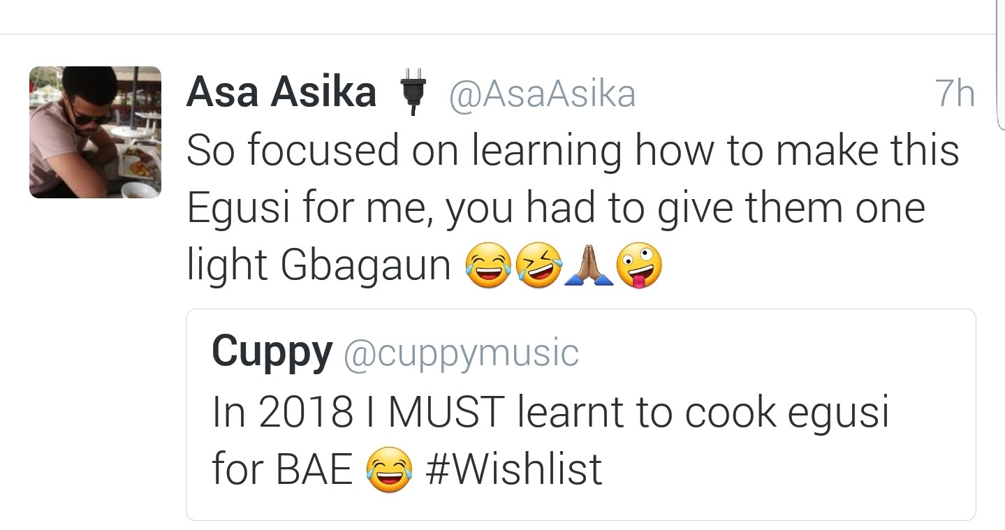 Egusi: Asa Asika Trolls Girlfriend, DJ Cuppy For Her "Gbagaun" Post On Twitter - 9jaflaver