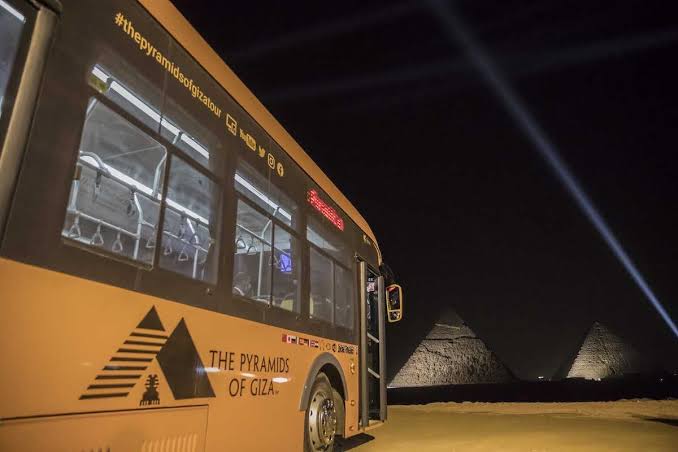 Developers late on Tuesday night opened a new restaurant, “9 Pyramids Lounge”, which covers an area of 1,341 square meters and overlooks the Giza pyramids. There will also be a fleet of new environmentally-friendly buses to guide tourists around the plateau.