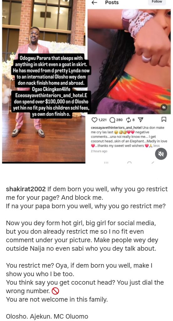 Ehi called her out and accused her of having mental issues, so Ms. Taiwo turned her attention to Ehi and accused her of being an “olosho” (prostitute). She also told Ehi that she is not the only women her twin brother Mr. Kehinde is currently seeing.