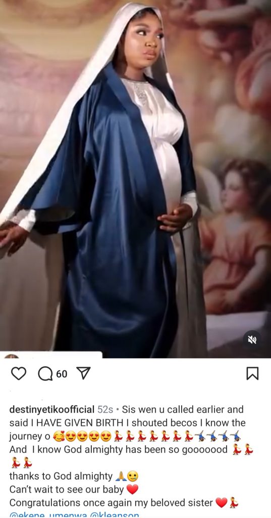 Ekene Umenwa announces birth of first child with Virgin Mary-inspired video(video)