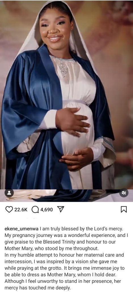 Ekene Umenwa dressed like the Virgin Mary in her maternity shoot.