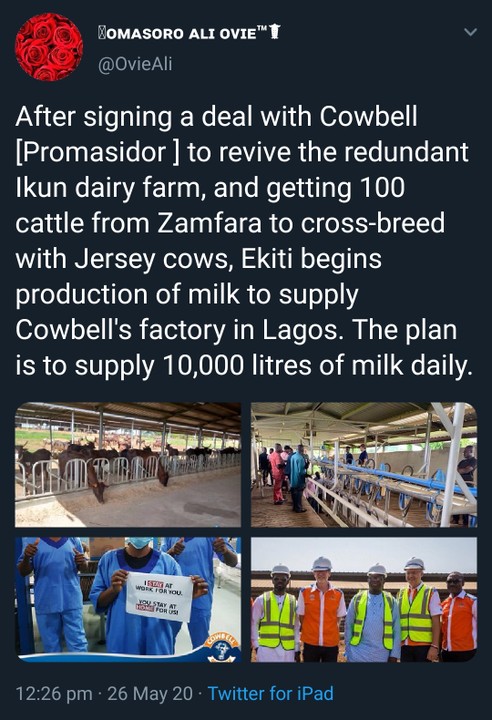 Ekiti Begins Milk Production To Supply Cowbell's Factory In Lagos - 9jaflaver