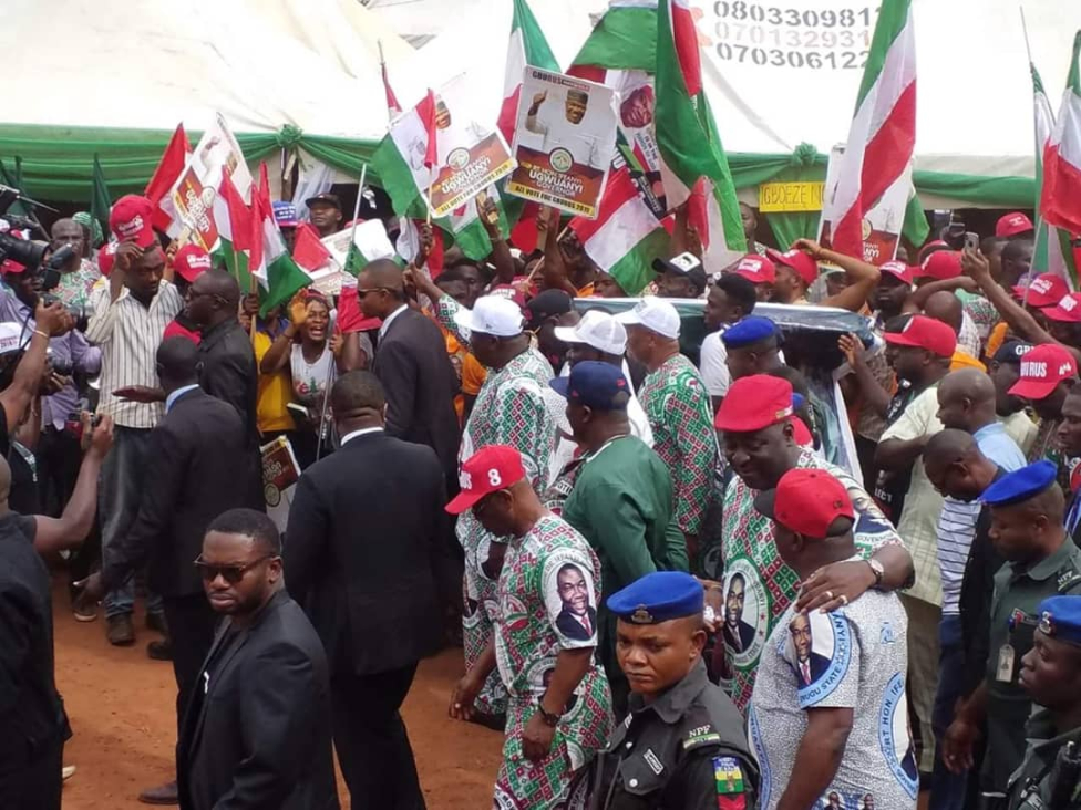In his speech, Senator Ekweremadu disclosed that it was because of the peace in the state that Senator Nwobodo, for the first in the history of the state, joined other PDP leaders to witness the closing ceremony of the party’s campaign.