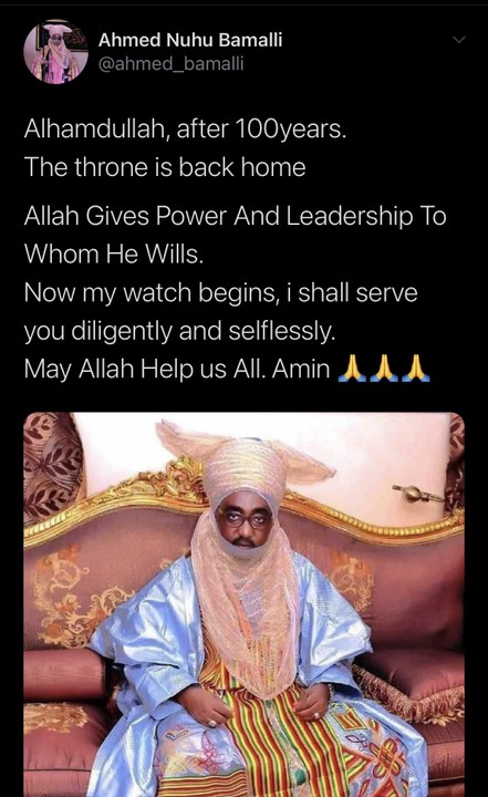Alh. Bamalli is the first emir from the Mallawa ruling house in 100 years, following the demise in 1920 of his grandfather, Emir Dan Sidi.
