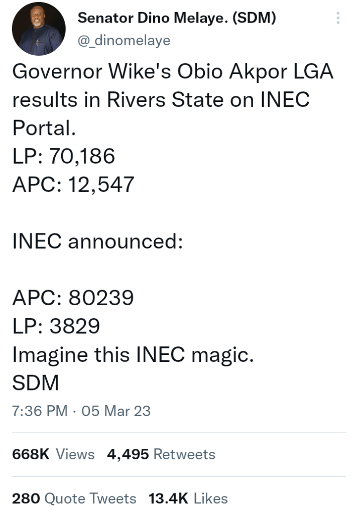 See link below for Dino-Melaye‘s tweet..