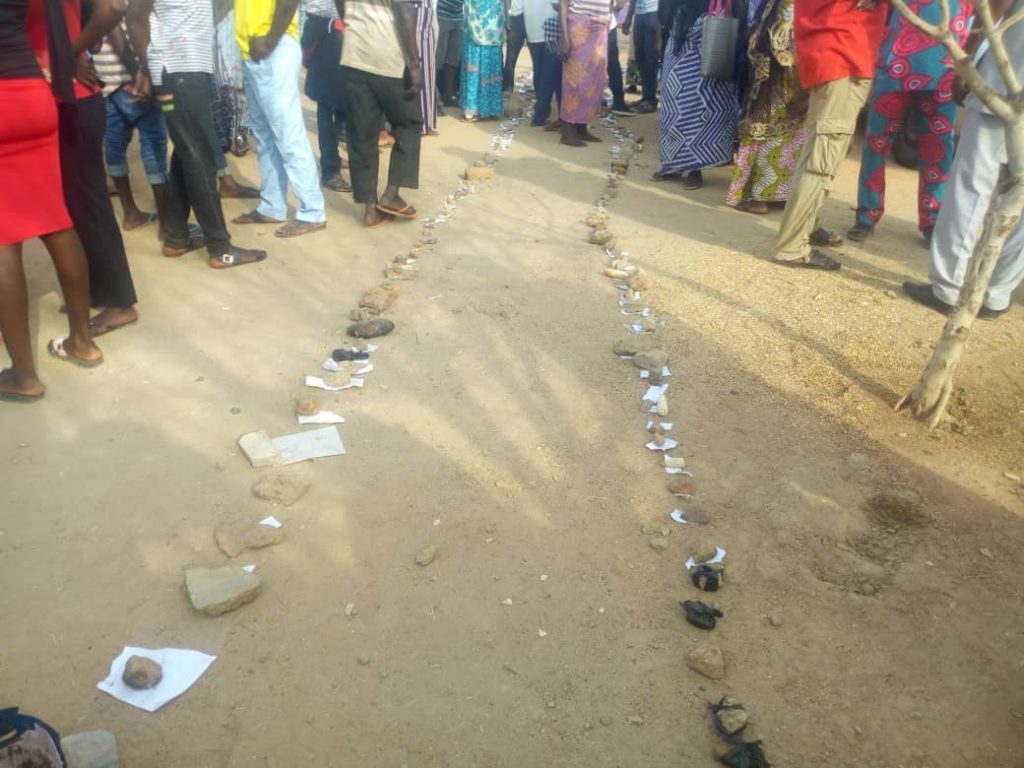Voters at a polling unit in Bauchi used stones to reserve their spaces on the queue as they took refuge from the weather in sheltered places.