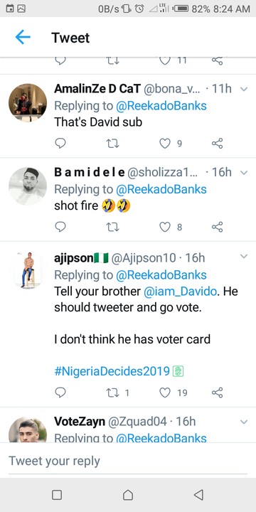Election drama is getting interesting among celebrities. Reekado banks took to his twitter page to post what looks like a shade directed at David’s.